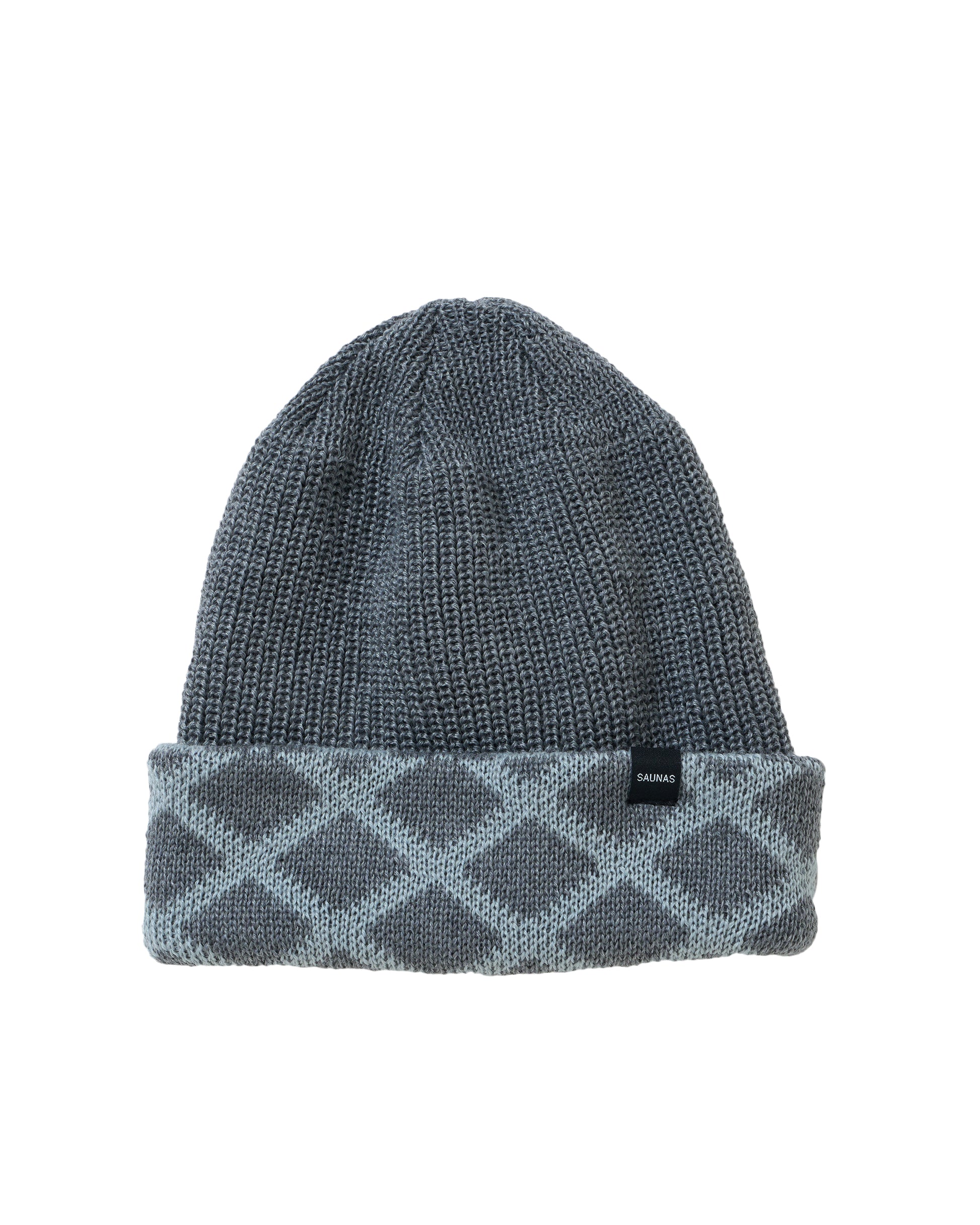 サウナストーブをモチーフにした、ちょっと遊び心のあるニットキャップ。